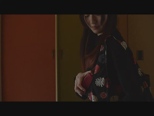 【Web限定】L字開きミニ財布 A.飛び菊文様黒地赤花