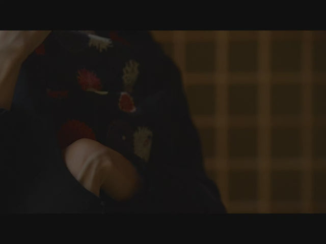 【Web限定】L字開きミニ財布 A.飛び菊文様黒地赤花